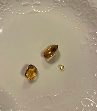 Alexandra sits at the head of the table like an empress, trays of gems laid out in front of her. She begins her talk and shows us how to tell the difference between a pink sapphire and a ruby, followed by yellow sapphires, citrines and garnets. We pass a plate around the table for closer inspection. They look like boiled sweets.